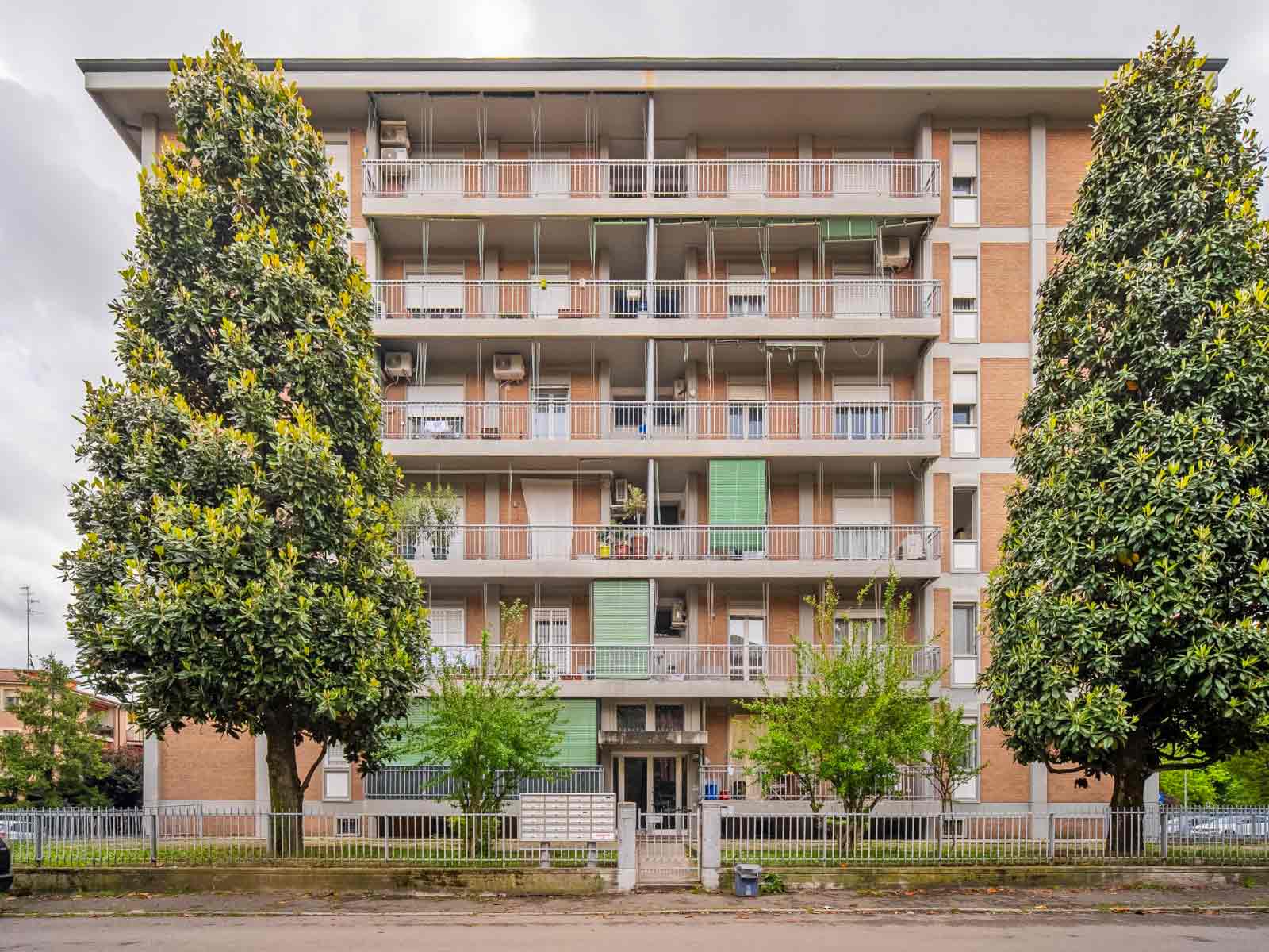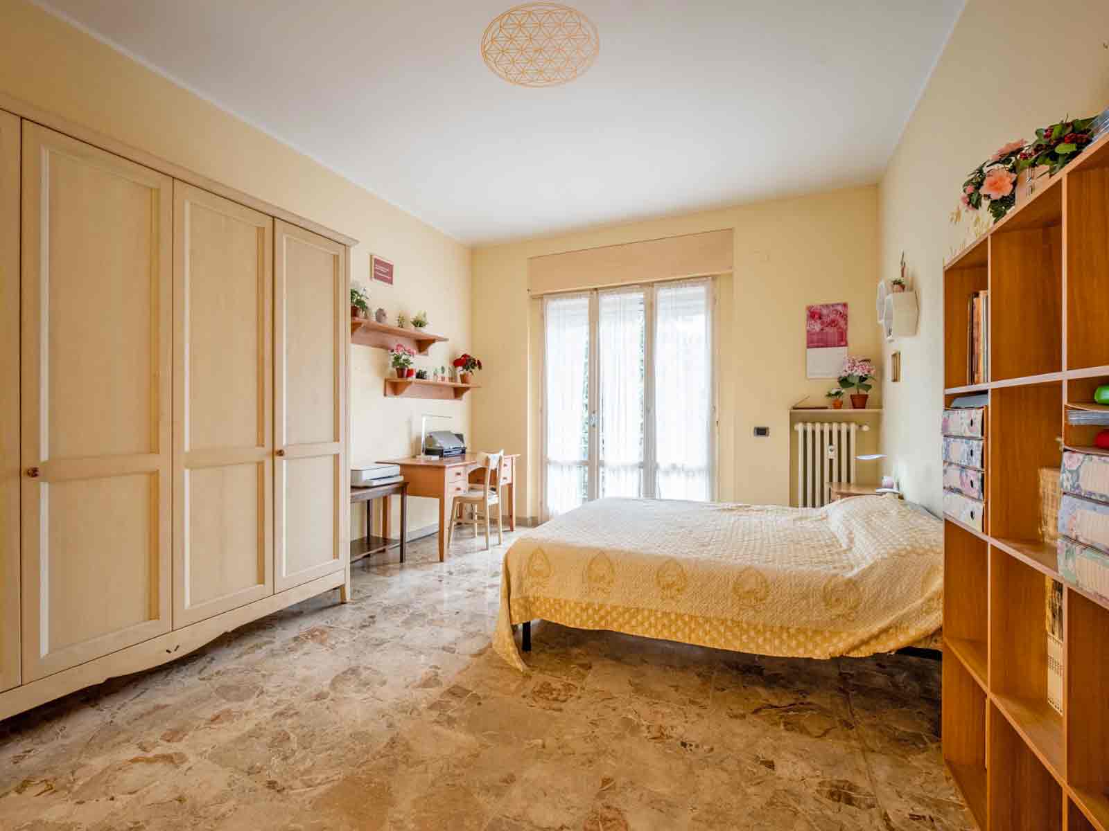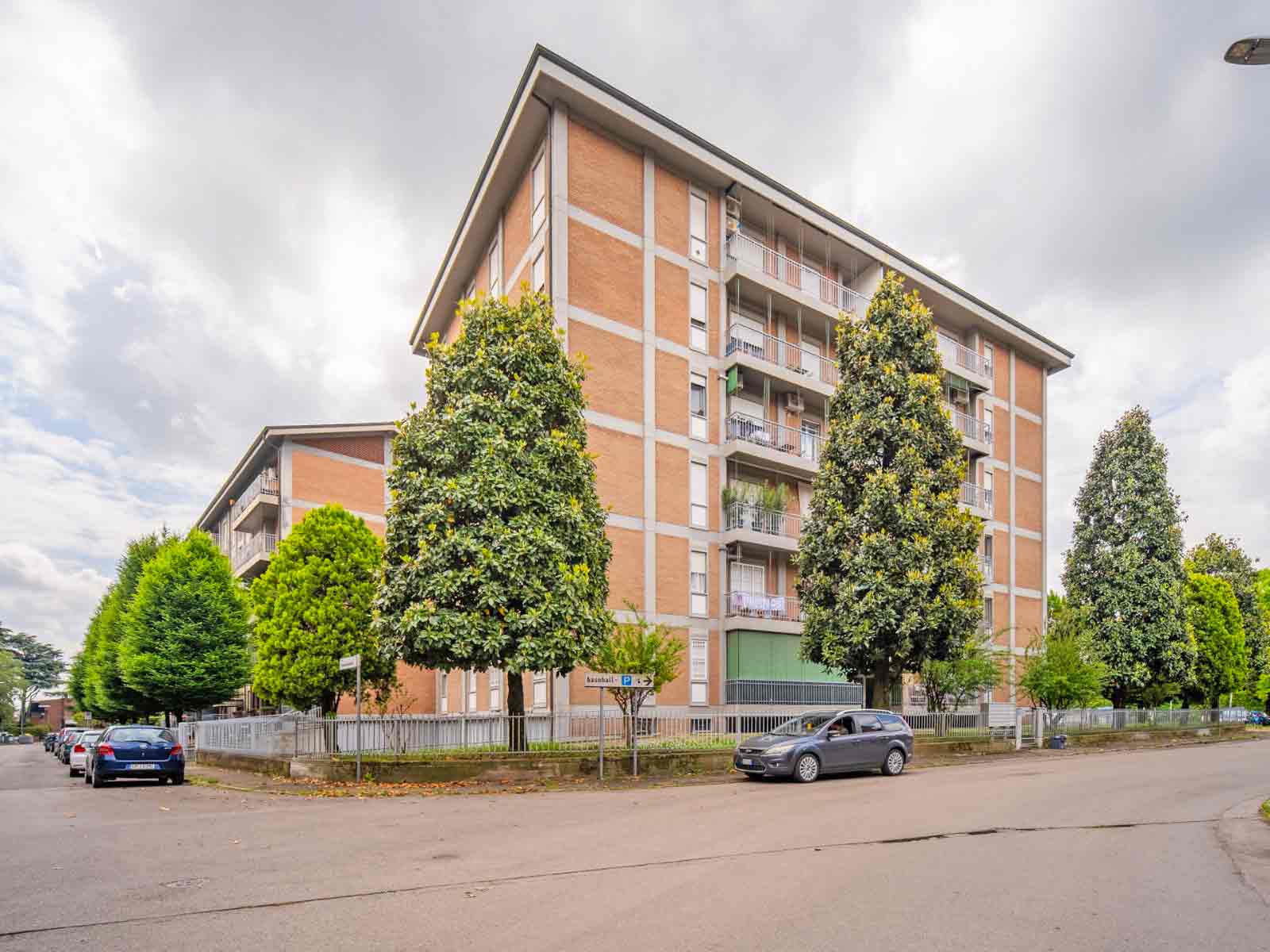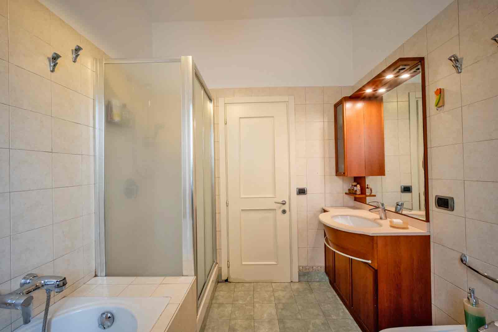In zona verde e tranquilla appartamento al piano secondo in palazzina recintata e dotata di ascensore, composto da: ingresso, cucina abitabile con balcone, soggiorno, due camere matrimoniali e bagno; al piano sesto sottotetto e infine al piano seminterrato cantina e garage. Ottimo stato, condizionatore.