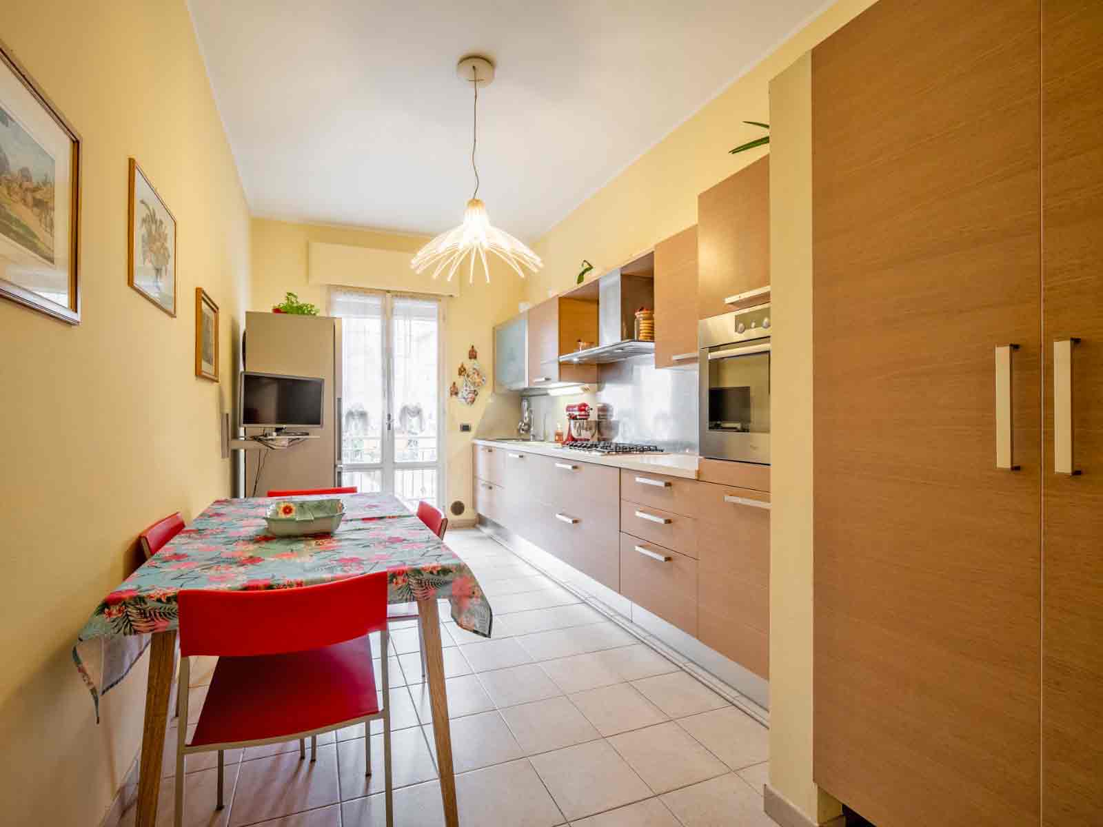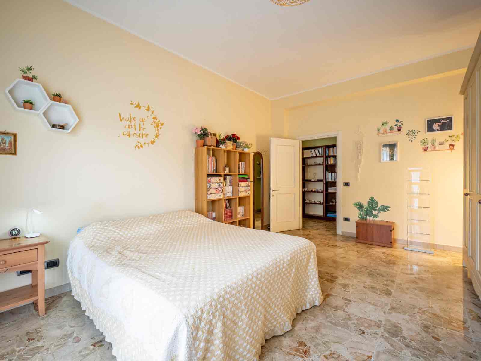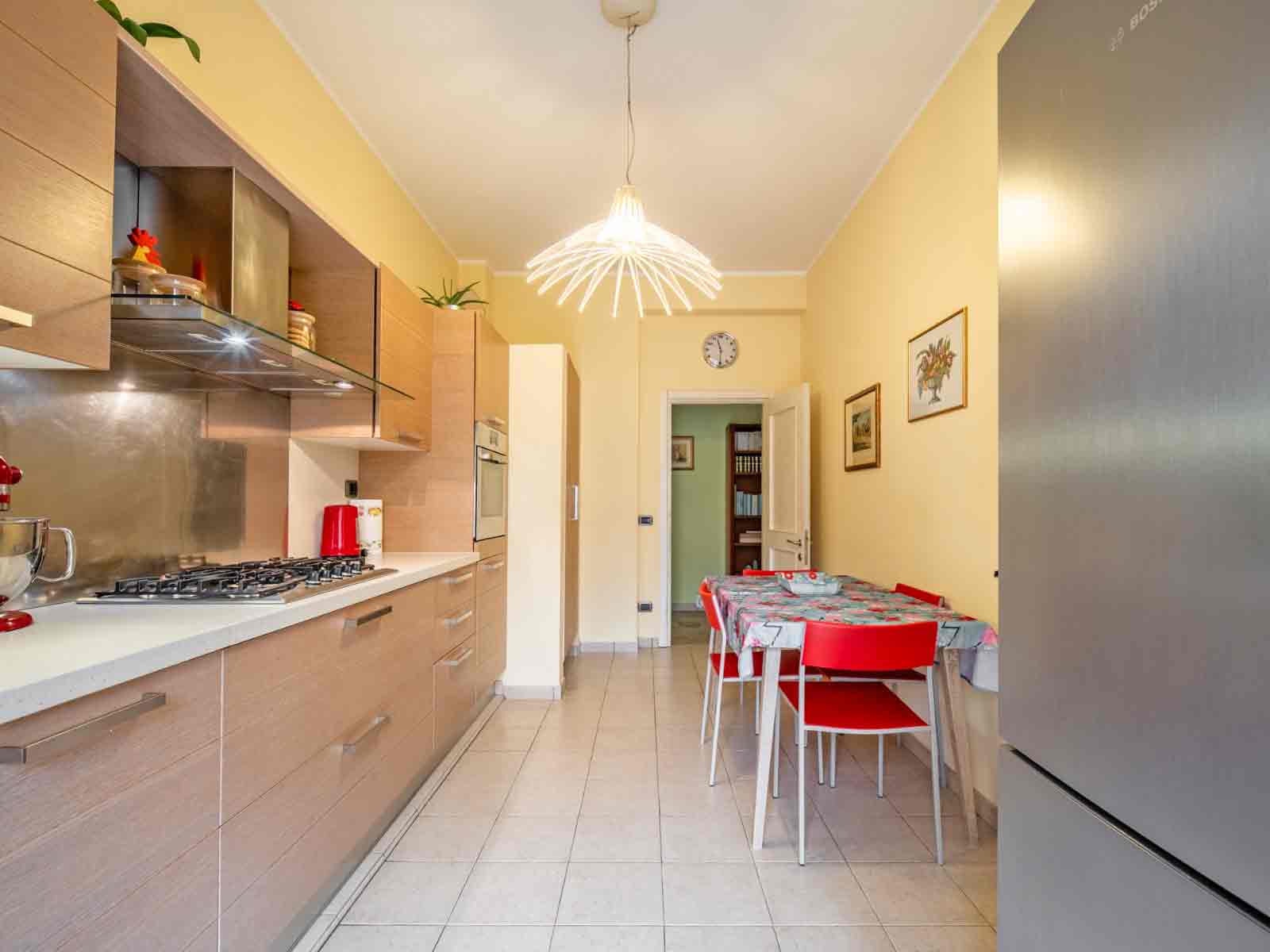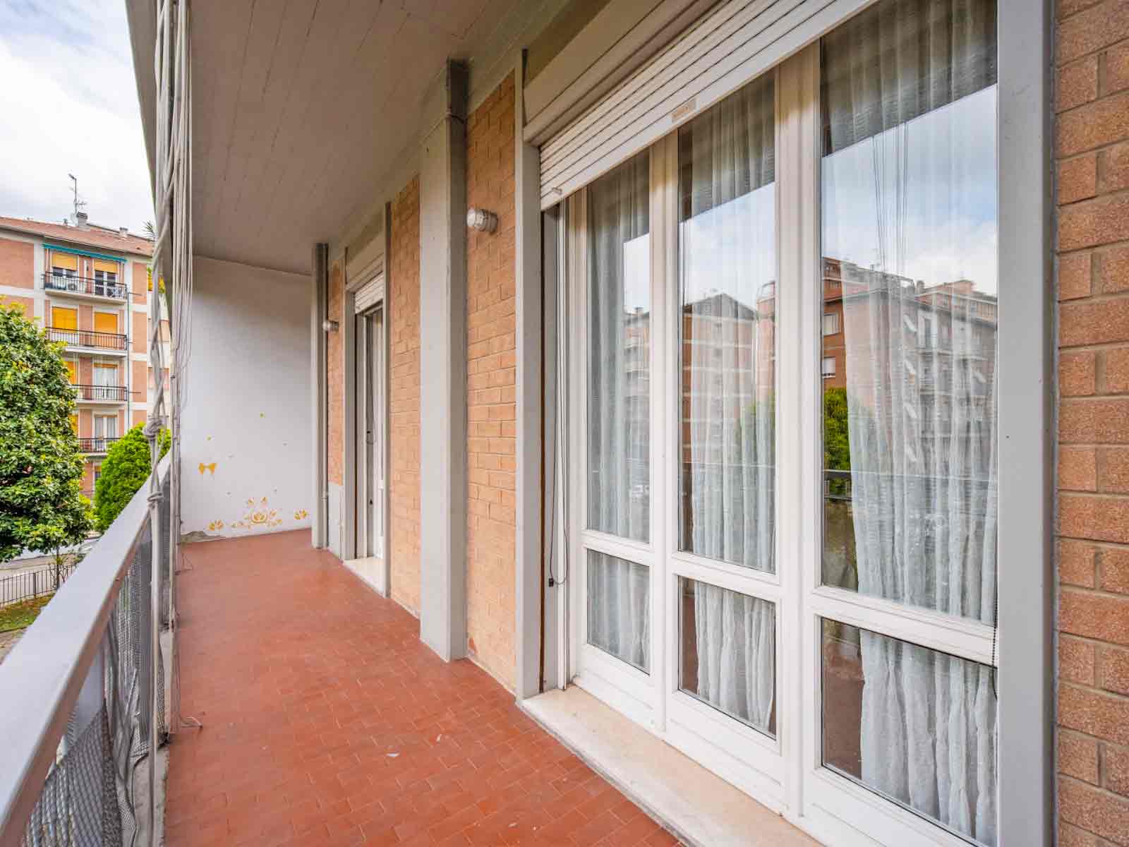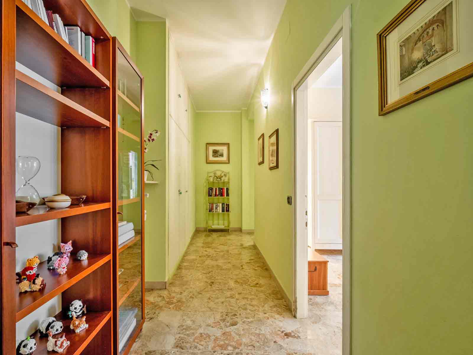 In zona verde e tranquilla appartamento al piano secondo in palazzina recintata e dotata di ascensore, composto da: ingresso, cucina abitabile con balcone, soggiorno, due camere matrimoniali e bagno; al piano sesto sottotetto e infine al piano seminterrato cantina e garage. Ottimo stato, condizionatore.