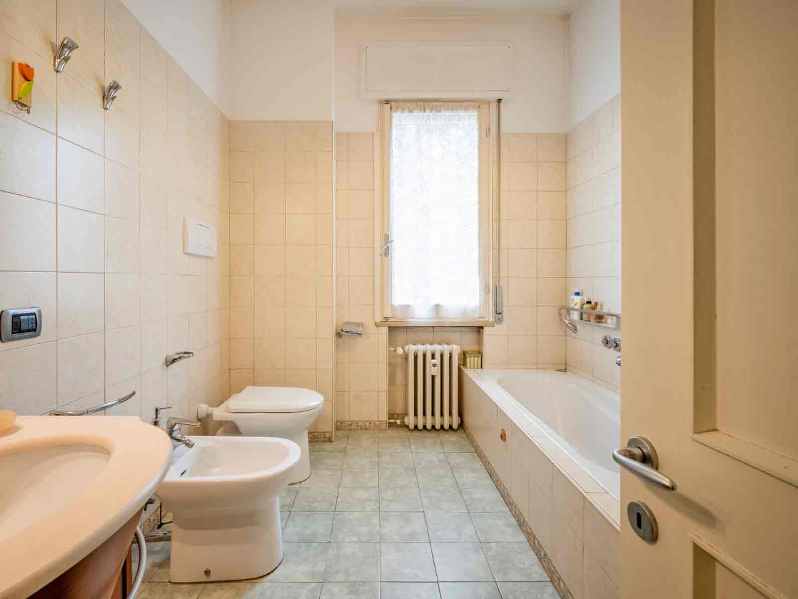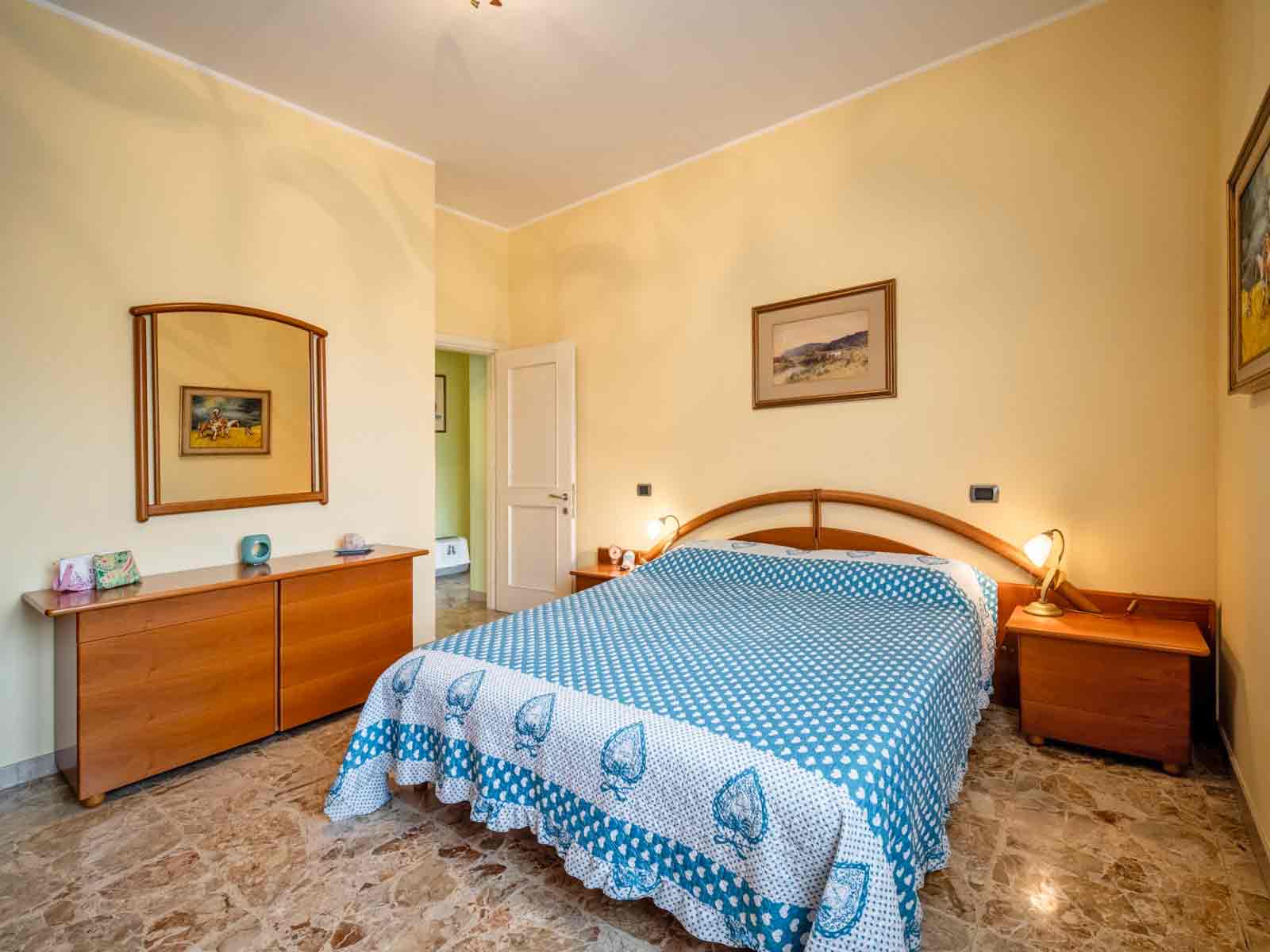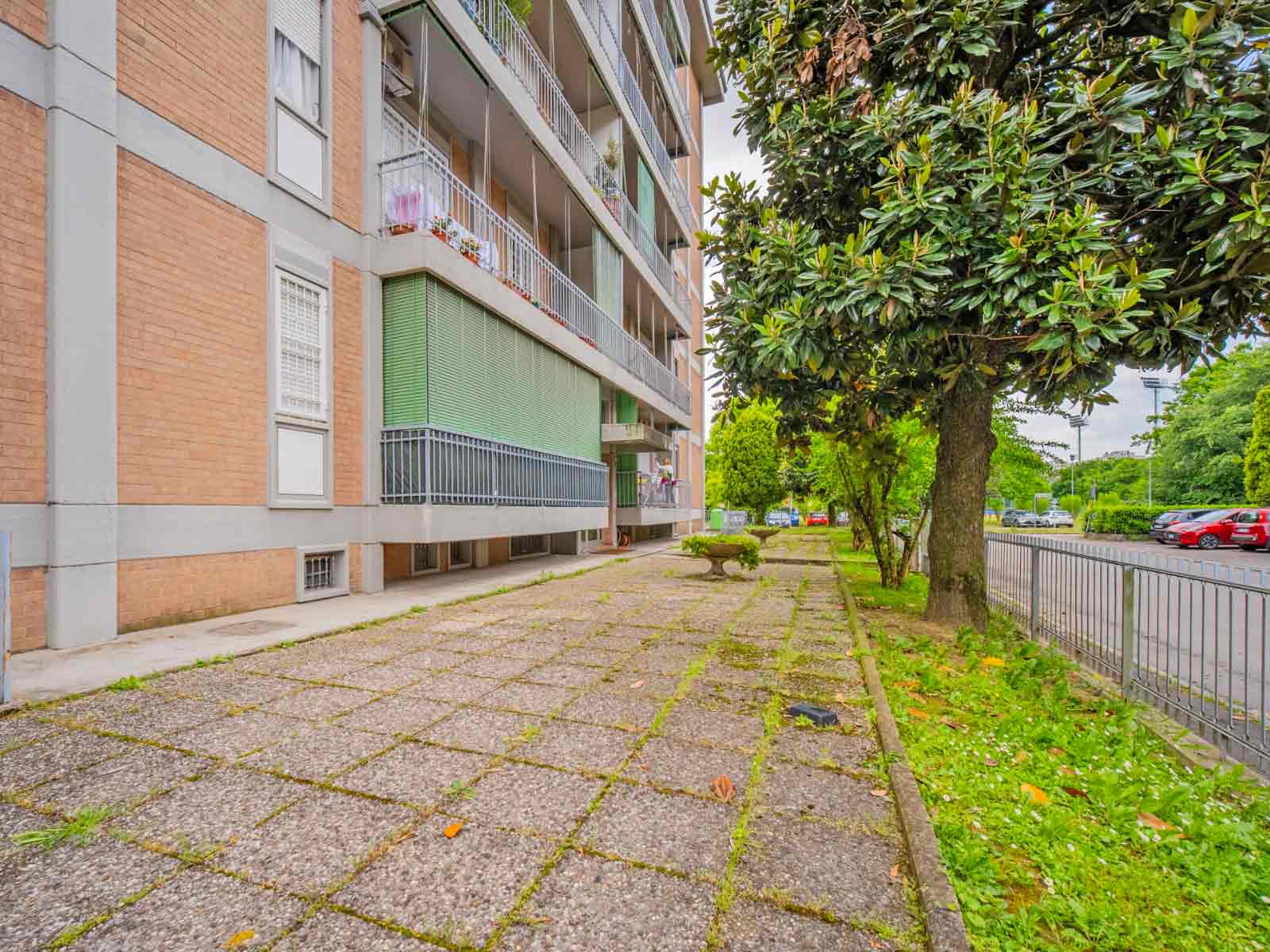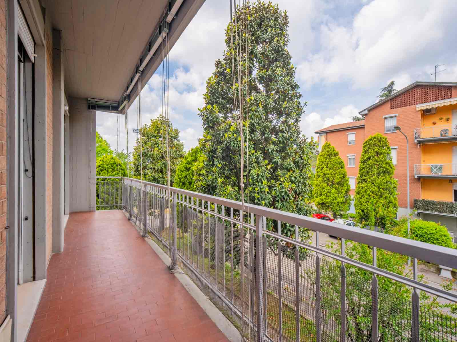 In zona verde e tranquilla appartamento al piano secondo in palazzina recintata e dotata di ascensore, composto da: ingresso, cucina abitabile con balcone, soggiorno, due camere matrimoniali e bagno; al piano sesto sottotetto e infine al piano seminterrato cantina e garage. Ottimo stato, condizionatore.